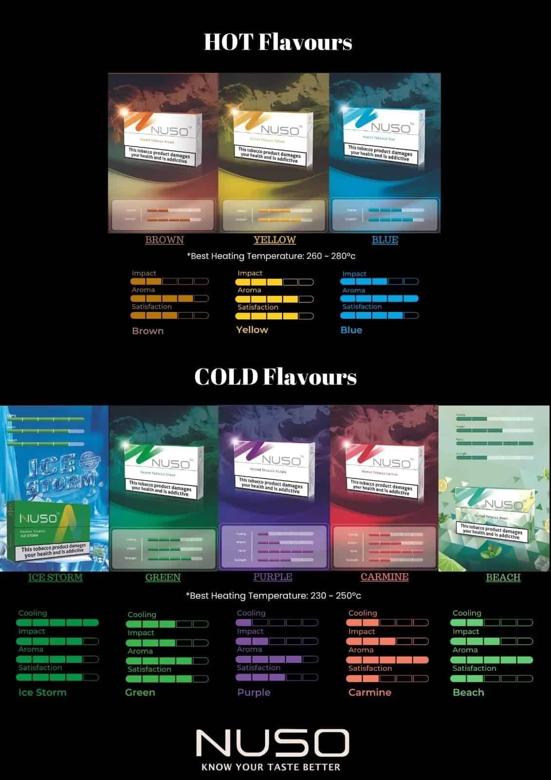 目前,NUSO 已經推出了包括原味、混合、藍韻、薄荷、藍莓等多種風味的煙彈,以滿足不同消費者對於口感的偏好。品牌限量版產品「ICESTORM」系列將煙草與薄荷口味深度結合,為消費者帶來強烈的涼感和擊喉感刺激。在過去的兩年中,NUSO 煙彈的銷售範圍不斷擴大,目前已成功進入俄羅斯、泰國、印尼等 20 多個國家和地區的市場。