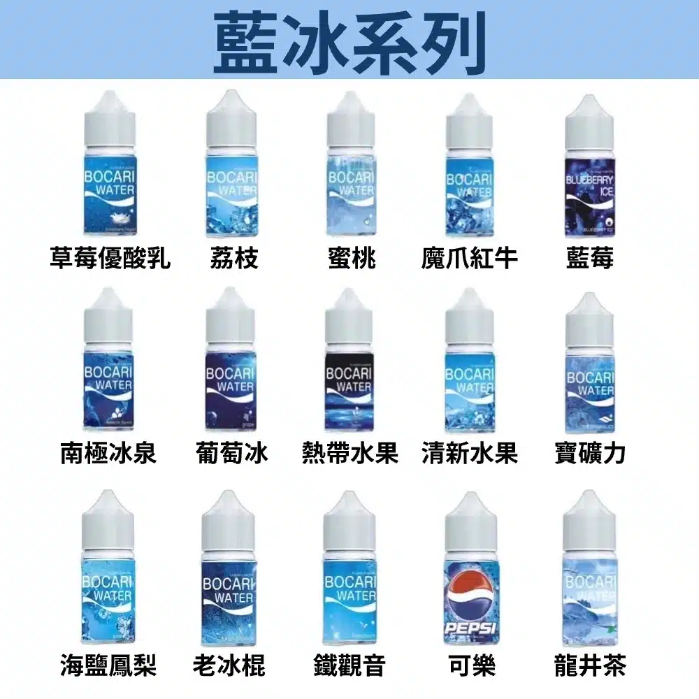 藍冰系列 30ml(4%)小煙油,每瓶30ml,適配所有煙彈。冰鎮沁涼的薄荷與各種水果混合,吸上一口, 冰涼口感中帶著微微甜味,提神醒腦,消除疲倦,立馬恢復活力,滿足您的個新華體驗,清新涼爽,緩解夏日炎熱!